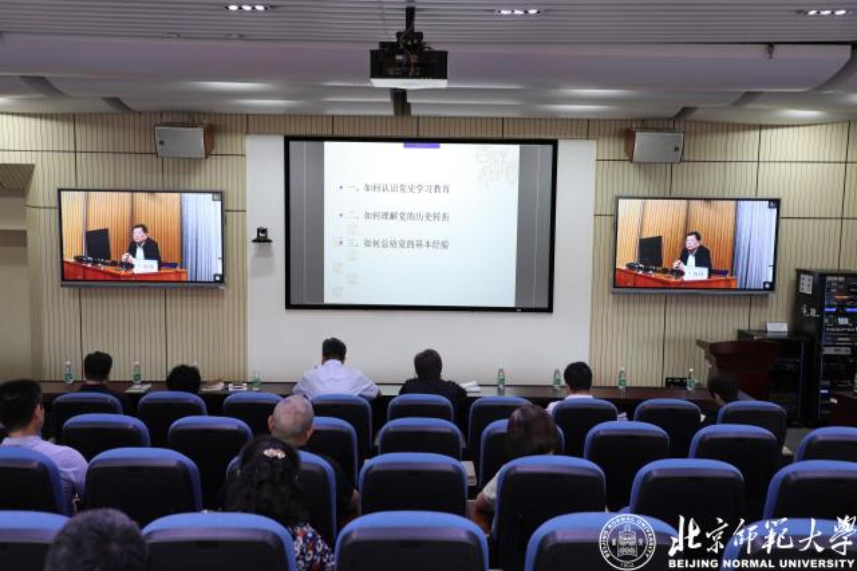 3月31日,由beat365在线唯一官网、党委学生工作部、珠海园区管委会办公室联合举办的“静如讲坛”2021年第一讲,在北师大北京校区敬文讲堂举行。此次讲座嘉宾是教育部高等学校社会科学发展研究中心主任王炳林教授,主讲题目为“从党的历史中汲取智慧和力量”。此次讲坛北京校区和珠海校区同步进行。beat365在线唯一官网副校长王守军、珠海园区党委理论学习中心组成员、珠海园区各部门和院系负责人以线上直播的方式参加了讲座;beat365在线唯一官网党委理论学习中心组成员、教师和学生代表,学校学生党员和入党积极分子现场共200余人聆听了讲座。讲座由beat365在线唯一官网院长张润枝教授主持。 讲座现场 珠海园区会场 王炳林教授围绕习近平总书记在党史学习教育动员大会上的重要讲话精神,从如何认识党史学习教育、如何理解党的历史转折、如何总结党的基本经验三个方面,阐述了党史学习教育的重要性。他指出,党史学习必须树立正确的党史观,要准确把握党的历史发展的主题主线、主流本质,正确认识和科学评价党史上的重大事件、重要会议、重要人物。党史学习,一要学习党的不懈奋斗史;二要学习党的理论创新史;三要学习党的自身建设史;四要学习党的系列革命精神变迁史。从党的百年历史经验来看,科学判断形势、认清基本国情是中国共产党制定正确政策的重要基础;坚持解放思想、勇于理论创新是中国共产党推进事业发展的重要动力;正确处理改革发展稳定的关系是中国共产党治国理政的重要经验。整场讲座内容的理论性、历史性和实践性紧密结合,旁征博引,视野开阔,思想深刻,通俗易懂。 “静如讲坛”是以已故著名马克思主义理论专家、中共党史学家、教育家张静如先生的名字命名的学术讲坛,由beat365在线唯一官网主办,旨在缅怀前辈学人的严谨治学风范和高尚学术人格。讲坛汇聚中共党史党建和学术界的一流专家学者,展示中共党史党建研究的最新前沿动态,为加强马克思主义理论教育和中共党史党建学科建设提供交流平台。在庆祝中国共产党成立100周年之际,以及党史学习教育过程中持续举办“静如讲坛”,有利于广大师生保持政治定力,砥砺政治品格,弘扬北师大优良传统,传承北师大红色基因,为全面建设社会主义现代化国家、实现中华民族伟大复兴中国梦而不懈奋斗。